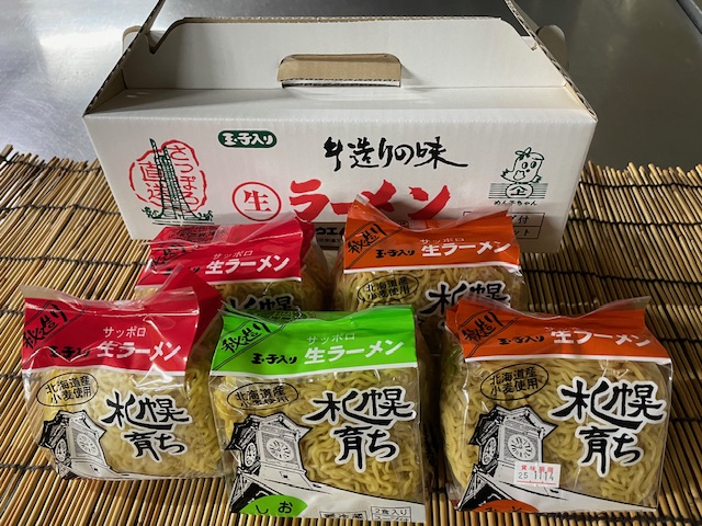 ラーメンDXセット(2食入×5袋) 2025年4月10日 最終更新日時 : 2025年11月3日 ウエムラめん子 北海道産小麦ラーメンDXセット 先代から伝わる玉子ラーメンとオリジナルスープをセットした、ロングラン商品です。 この味懐かしい!との声をよくお聞きします。 みそ・しお・正油(スープ)の3種類をおみやげ箱に詰め合わせました。 (なお、詰め合わせ内容はお客様のお好みでご自由に変更承ります) 販売価格 1,650円(内税)