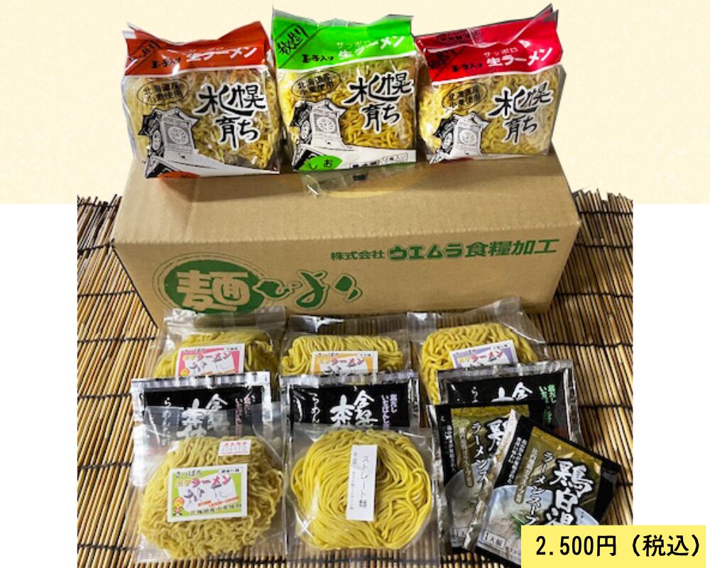 桃花ラーメン/札幌育ち生ラーメン(11食、スープ付) 2026年1月9日 最終更新日時 : 2026年2月2日 ウエムラめん子 ・桃花ラーメン4食(140g/1食)(中細、細縮れ、中太、太縮れ) ・ストレート麺1食(140g/1食) スープ味/合わせ本仕込みの ”みそ、正油、しお”と鶏白湯があります。 ・北海道産小麦ラーメンDX3袋(2食入×3、スープ付)正油、みそ、しおがあります。