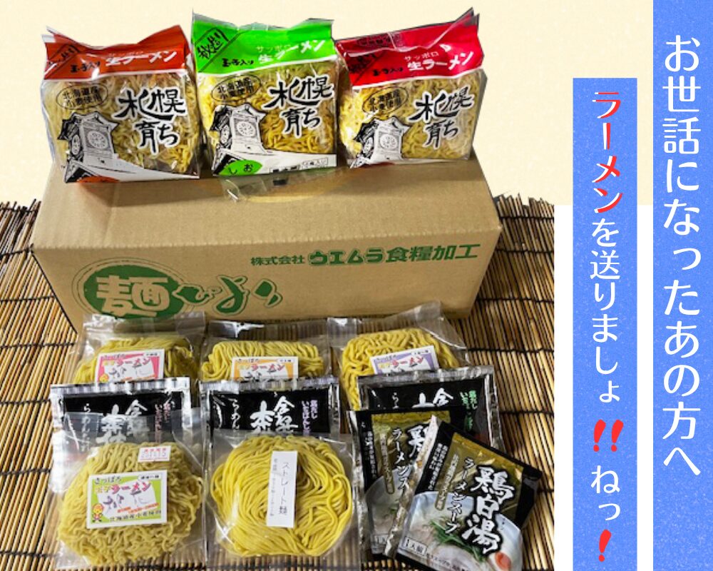 当店発祥の玉子ラーメンとスープをセットした、しょうゆ・みそ・しおスープ付。ロングラン商品です。麺120g/1食×6